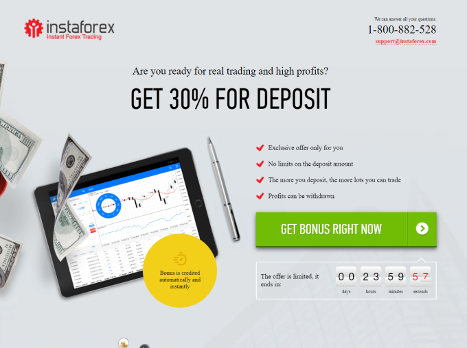 โบนัสต้อนรับ 30% สามารถใช้ได้ง่ายๆ เพื่อประโยชน์ของคุณ ลูกค้าทุกคนที่ได้รับ InstaForex สามารถใช้บริการนี้ได้
