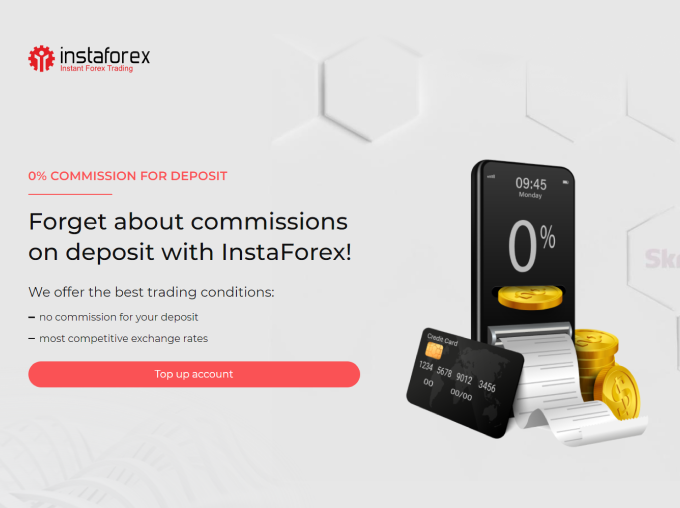 InstaForex มอบอัตราแลกเปลี่ยนที่ดีที่สุดและไม่เรียกเก็บค่าคอมมิชชันในการฝากเงิน ไม่ว่าลูกค้าจะใช้วิธีการซื้อขายไหนก็ตาม - จำนวนเงินที่ฝากจะถูกเครดิตในบัญชีการซื้อขายทั้งหมดโดยไม่มีค่าธรรมเนียมใด ๆ.